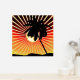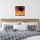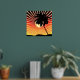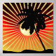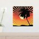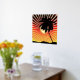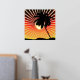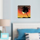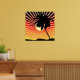 Stylish foil print featuring a golden foil sunset, with a palm tree silhouette in the foreground. Beautiful print with a tropical flair.