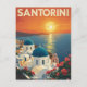 This beautiful card features a vintage-style illustration of the iconic Greek island of Santorini. The design captures the famous white-washed buildings with their blue domes, all set against a stunning sunset over the Aegean Sea. The warm, vibrant colours and retro typography give it the feel of a classic travel poster, making it a perfect memento from a trip or a greeting for any lover of travel and Mediterranean charm.