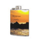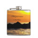 Flask with a beautiful sunset and a bird sitting on the rocks, You can customise the flask with your name or special saying. art by Elenne Boothe