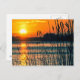 This scenic photo depicts the sun setting over a lake with picturesque reeds in the foreground.