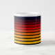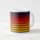 Multicolor striped design inspired by a sunset. Minimalist design in dark blue, and different shades of pink, red, orange, and yellow.