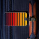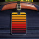 Multicolor striped design inspired by a sunset. Minimalist design in dark blue, and different shades of pink, red, orange, and yellow.