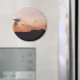 Brighten your kitchen or office with this fridge magnet, showcasing a beautiful sunset photograph. The vivid orange and purple sky, with a charming town silhouette, adds a pop of colour and serene beauty to any metallic surface. It's a perfect small accent or a thoughtful gift.