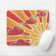A gold and orange sun sets and the wind blows red and pink clouds across the sky. Mousepad with a gold, orange, red, pink and white customisable design for you to personalise with your own text, images and ideas. An original coloured pencil and metallic ink drawing by Jess Perry.