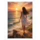 Bring the beauty of a peaceful sunset into your space with this stunning Sunset Ocean Aesthetic Photo Enlargement. Featuring a realistic fine art oil painting of a serene ocean view, this artwork captures a magical moment of a girl standing by the shore, surrounded by warm golden light and calming waves.