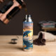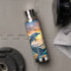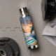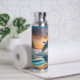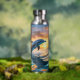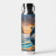 For those who love the sea and all its beauty, this beverage bottle features a stunning image of a blue dolphin leaping over the water. A blazing orange and gold sunset is at the horizon. Uniquely beautiful!