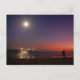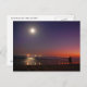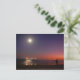 A couple kiss on a beach while the sun sets over the ocean and the moon and stars come out.