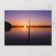 Sunset on a summer lake seen through a fishing rod postcard