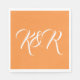 For the bright themed weddings inspired by sunset and citrus. Modern minimal and elegant sunset orange with mid-century calligraphy with bride and grooms name initials personalised wedding napkins. This product is easily editable. If you need help with the customisation of this product or you need more matching products for this collection kindly message me via Zazzle.
