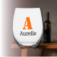 Sunset Orange Elegant Initial Black Name | Modern Stemless Wine Glass