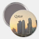 Souvenir fridge magnet with the skyscrapers in the skyline of the commercial centre of Doha, the capital of the Arabian Gulf country Qatar at sunset with the text 'Qatar'.