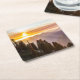 Sunset over forest square paper coaster