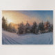 Sunset over frozen snowy forest near sea jigsaw puzzle
