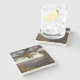 The coasters are gorgeous, a quality feel and heavy weight. They look like a precious archeological find. A rustic stone juxtaposed with a modern floral black and white print. I like the way the print goes slightly imperfect on the cut stone edges giving them a kind-of natural beauty.