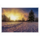 Panoramic view of sunset over covered in snow park with big fir tree in winter
