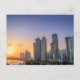 Postcard of a colourful sunset over the skyline with the skyscrapers on the Corniche in the city centre of Doha, capital of the Gulf country Qatar.