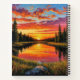 A serene sunset over a calm forest river reflecting vibrant hues of the evening sky. The scene embodies tranquillity and nature's beauty, perfect for evoking peaceful and harmonious emotions.