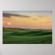 This photo features a sunset over wheat fields and farm near Palouse, Eastern Washington State.