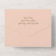 Transport your guests to a paradise of love and celebration with this unique and captivating wedding invitation. The warm hues and delicate details create an atmosphere of romance and sophistication, setting the perfect tone for your special day. The All-in-One wedding invitations are both beautiful and practical by combining the wedding invitation with an easy to remove perforated RSVP postcard. They are also quick and easy to prepare for mailing. Simply address the invitation, fold the back flap and seal with the included clear stickers. Once your guests receive the pre-addressed invitation they simply tear off the perforated RSVP card and drop it in the mail. The addition of the QR code allows your guests to easily access your wedding website for information including reception details and dinner choices! Simply replace the sample URL with the URL from your wedding website.