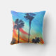 Sunset beach with palm trees original art by Sacha Grossel. Red and orange sunset dreaming beach theme art in original watercolor style. Surf sunset theme.