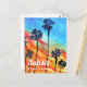 Sunset beach with palm trees original art by Sacha Grossel. Red and orange sunset dreaming beach theme art in original watercolor style. Surf sunset theme.