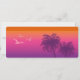 Destei's destination wedding save the date card design with a faux boarding pass looking theme. The design includes tropical purple palm tree silhouettes, three flying bird silhouettes and an aeroplane silhouette. The background is a beautiful orange to pink to purple gradient giving the design a tropical summer sunset look. The design has multiple personalizable text areas perfect for writing the date of the wedding, the names of the people getting married and even the location of the wedding.