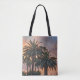 My original photographic art is featured on this pretty tropical tote bag, consisting of palms trees silhouetted against a sunset sky. I processed my photograph in a watercolor art style. The front and back have the same image flipped for continuity.