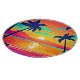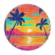 A vibrant and colourful illustration of a tropical sunset over a calm ocean with palm trees silhouetted against the sky. Perfect for creating a relaxing and serene atmosphere (This Design Made With AI). Place Order Today and Embrace the Joy of Shopping!