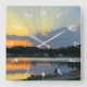 Personalise (add your text or change the image) on photography of Tropical sunset scene: reflections on the lake and sun rays on the sky, silhouettes of Sandhill cranes on rest - designed on any Zazzle Clocks.