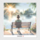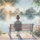 This serene artwork captures a quiet moment of solitude and reflection as a young woman sits peacefully on a wooden bench, gazing out over a calm lake bathed in golden sunset light. Surrounded by lush trees and blooming wildflowers, the scene evokes a tranquil cottagecore charm, blending soft watercolor textures with gentle lighting. Warm hues of amber and pastel greens complement the dreamy glow of the setting sun, while delicate shadows stretch across the water’s surface. The composition invites viewers into a world of quiet contemplation, wrapped in nature’s embrace. AI generated artwork.