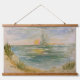 Painted seascape with sailboat seen from the beach. beautiful blues and greens in the water with a gorgeous sunset aglow of yellows and oranges. Design works as wall art, stationary and many home decor items.