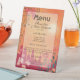 The menu is presented on a freestanding pedestal sign—perfect for buffets, place settings, or display stands—offering both beauty and visibility. All text is fully customisable, including the couple’s names, wedding date, and menu items from appetizers to desserts, so it can suit any cuisine or celebration style.