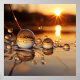 This enchanting image titled "Sunset Serenity: Reflections of a Golden Hour" is a captivating portrayal of nature's quiet moments, where time seems to stand still. The setting sun bathes the scene in a warm, golden glow, casting elongated rays that dance across the glistening surface of water. Meticulously captured water droplets rest delicately on the surface, acting as spherical prisms that encapsulate the sun's dying light and the evening's calm. Each droplet mirrors the world around it, creating a tapestry of miniature landscapes that invite the viewer to ponder the beauty of the macrocosm within the microcosm. This poster is not just a visual treat; it is a homage to the tranquil moments of life, a reminder of the quiet beauty that exists when we pause to look closer. Ideal for those who seek to bring a touch of reflective peace into their living space, "Sunset Serenity" is a masterpiece that resonates with the soul's longing for stillness amidst the chaos of the everyday.