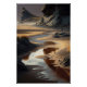 "Capture the Essence of New Zealand: Immerse yourself in the serene beauty of the South Island's rugged coastline with this captivating image. Bathed in the golden glow of a sunset, the sandy beach unfolds before your eyes, adorned with dark rocks and hues of brown sand. A gentle stream meanders through the landscape, its path leading gracefully to the vast expanse of the ocean. As warm sunlight casts long, enchanting shadows across the scene, you'll feel transported to a tranquil oasis of natural wonder. Perfect for those who yearn to bring the breathtaking landscapes of New Zealand into their home."