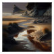 "Capture the Essence of New Zealand: Immerse yourself in the serene beauty of the South Island's rugged coastline with this captivating image. Bathed in the golden glow of a sunset, the sandy beach unfolds before your eyes, adorned with dark rocks and hues of brown sand. A gentle stream meanders through the landscape, its path leading gracefully to the vast expanse of the ocean. As warm sunlight casts long, enchanting shadows across the scene, you'll feel transported to a tranquil oasis of natural wonder. Perfect for those who yearn to bring the breathtaking landscapes of New Zealand into their home."