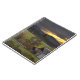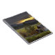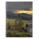 Sunset sky over vineyards and historic log cabin notebook