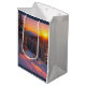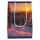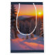 This winter holiday or Christmas gift bag features a super atmospheric snow scene complete with beautiful snow covered pine trees at sunset.
