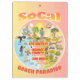 Bright and charming cartoon map offers a whimsical view of Southern California - fun and friendly characters enjoy the warm California sun showcasing Los Angeles, Orange County, San Diego, Beverly Hills, Laguna Beach, La Jolla, Santa Barbara, Palm Springs, and El Centro as well as Joshua Tree, Anza Borrego, and the Salton Sea plus the border cities of Tijuana, Tecate, and Mexicali.