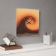 An abstract design of a mighty wave in a sunset sky.