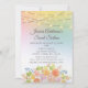 This invitation is designed with a floral bouquet and string lights, on a sunset theme background. Personalise with your party information to create a one of a kind invitation your guests are sure to love. Designed for a Sweet Sixteen.