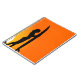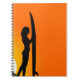 A cool design of a silhouette of a surfer girl holding her surfboard against a bright orange sunset. This beach, Summer inspired design is bright and vibrant and for lovers of surfing and the beach lifestyle all over the world.