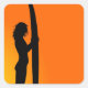 A cool design of a silhouette of a surfer girl holding her surfboard against a bright orange sunset. This beach, Summer inspired design is bright and vibrant and for lovers of surfing and the beach lifestyle all over the world.