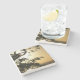 The coasters are gorgeous, a quality feel and heavy weight. They look like a precious archeological find. A rustic stone juxtaposed with a modern floral black and white print. I like the way the print goes slightly imperfect on the cut stone edges giving them a kind-of natural beauty.