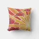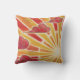 A gold and orange sun sets and the wind blows red and pink clouds across the sky. Throw pillow with a gold, orange, red, pink and white customisable design for you to personalise with your own text, images and ideas. An original coloured pencil and metallic ink drawing by Jess Perry.