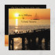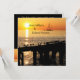 Sunset tropical theme invitation featuring a yacht boat moving along the horizon towards sunset, perfect for beach wedding