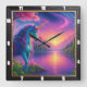This enchanting wall clock features a majestic blue unicorn with a flowing rainbow mane, standing by a serene lake at sunset. The vibrant purples and pinks of the sky, reflected on the water, create a magical and dreamy landscape. Perfect for adding a touch of fantasy and wonder to any room.