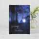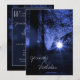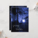 Perfect for an evening wedding, this photo invite shows a blue toned sunset with the sun shining through the trees.