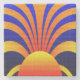 Sun Graffiti brick wall is a digital work of art with a dark blue gradient background and yellow redish orange gradient sun at the bottom, sun beams beaming up and outward.