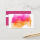 Chic watercolor appointment cards for your salon, spa or beauty services feature your name or company name layered on a blooming inkblot illustration in bright, colourful sunset hues of fuchsia pink ad goldenrod. Add your cancellation policy, custom heading, and contact information to the back in white on magenta. Includes space to write in your customer's next appointment date and time.