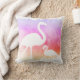 Watercolor sunset with white flamingo silhouettes throw pillow.